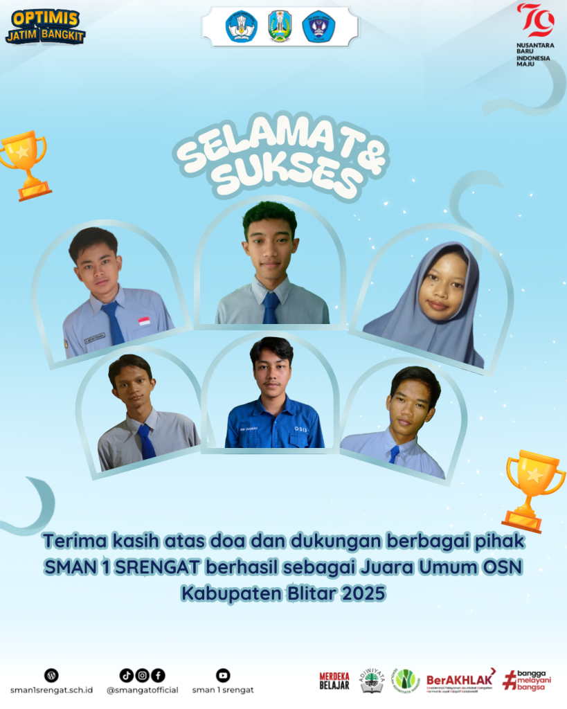 Dengan diraihnya juara umum ini, 6 perwakilan dari SMAN 1 Srengat berhasil lolos untuk mengikuti OSN Provinsi Jawa Timur.